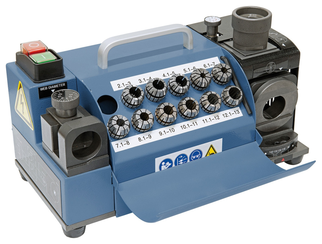 A könnyen kezelhető DG 13 M fúróélező köszörűgép ideális HSS és keményacél spirálfúrók köszörüléséhez. A 90° és 135° között állítható csúcsszög miatt ez a modell univerzálisan használható dupla vágóélű spirálfúrókhoz.